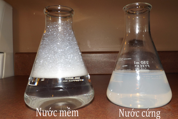 Lượng Canxi và Magie dư thừa trong nước cứng sẽ làm cho chất tẩy rửa mất tác dụng. Nguyên nhân là do lượng Canxi và Magie dư ngăn nước tạo thành chất tẩy rửa. Lớp này để lại một lớp mỏng màu trắng, gọi là váng xà phòng. Váng đóng cặn trên đồ làm ảnh hưởng đến độ bóng và sáng của quần áo.